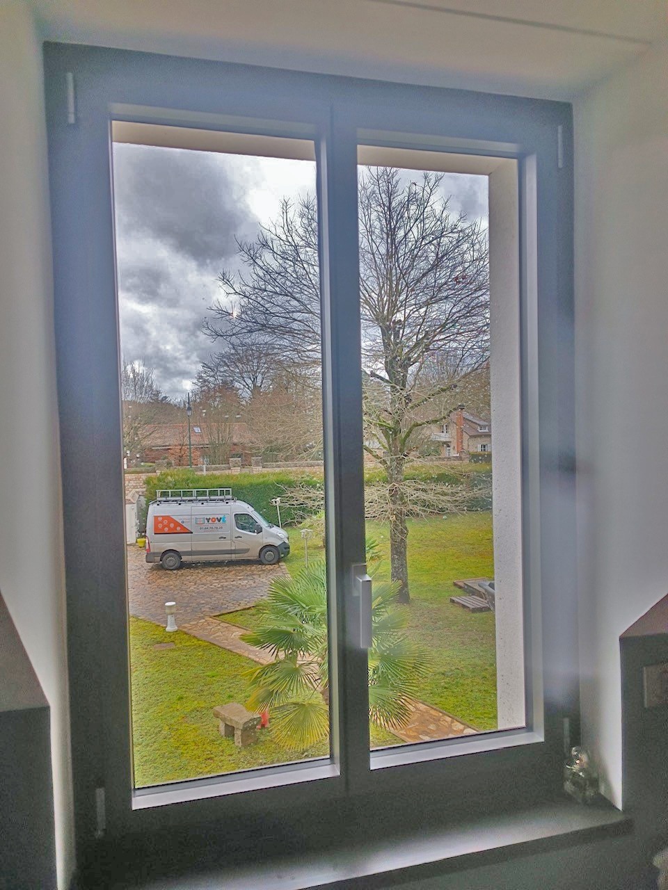 - Fenêtres aluminium de type Millet, gamme Simple, coloris gris 2900, vitrage feuilleté 44.2/16/4 (anti-effraction)