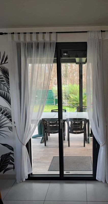 Ces nouvelles menuiseries modernise la façade de la maison, améliore l’isolation thermique et apporte un maximum de luminosité à l’habitation.