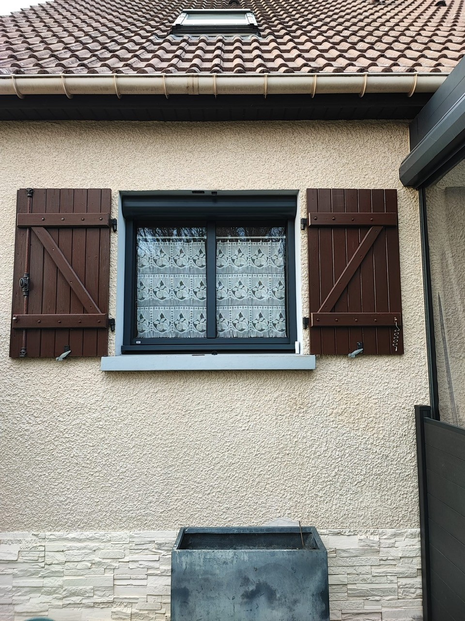Le + : Nous lui avons installé des volets roulants électrique PROFALUX qui proposent les coffres les plus fins du marché pour garantir un maximum de lumière et une emprise minimum du caisson sur la fenêtre