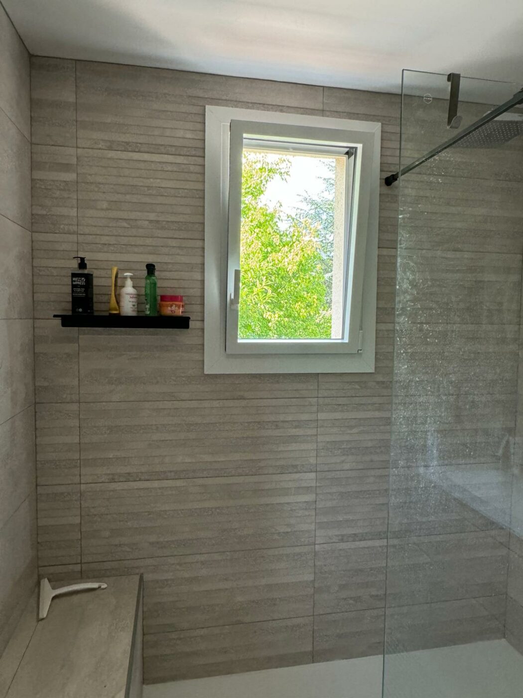 Nos clients nous ont contacté pour remplacer leurs anciennes menuiseries bois. Nous leurs avons conseillé des menuiseries aluminium Millet réputés pour la finesse de leurs profilés, apport en luminosité tout en améliorant l’isolation thermique. Le design épurés des profilés s’accordent parfaitement avec la décoration intérieure de la maison.