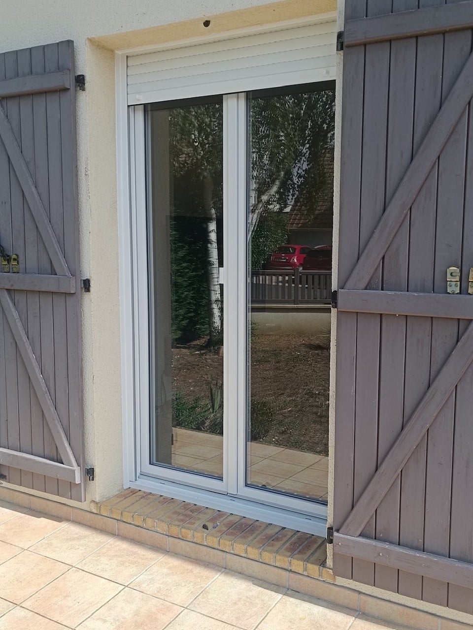 - Baie coulissante aluminium de type Millet, modèle ALIZEA, coloris blanc, volet roulant integré motorisation somfy