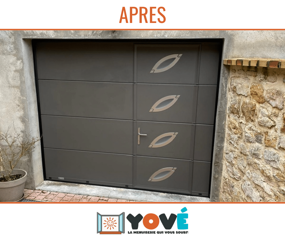 Notre cliente nous a contacté pour le changement de son ancienne porte de garage en bois. Nous lui avons conseillé une porte de garage aluminium avec portillon intégré.