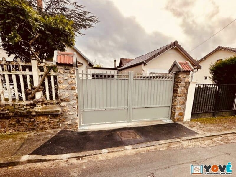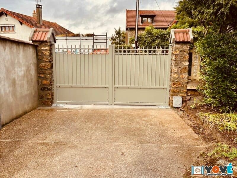 Les équipes YOVÉ ont réalisé la pose d’un portail et portillon en aluminium imitation fer forgé, de la marque Kostum à Sainte-Geneviève-des-bois.